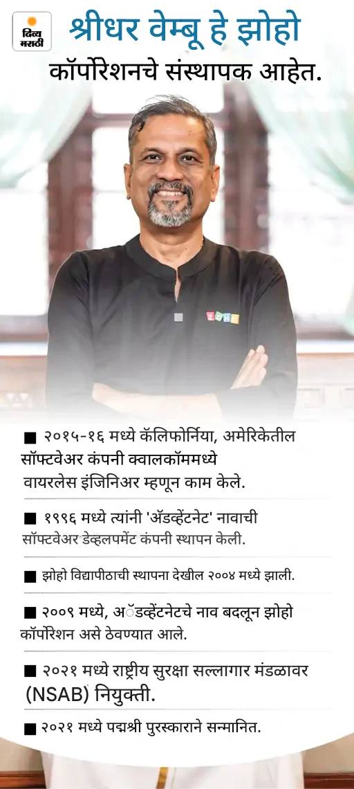ZOHO कंपनी आणि संस्थापक श्रीधर वेम्बू हे भारतीय आहेत. वेम्बू हे एक अबाधीश उद्योगपती असून झोहो कॉर्पोरेशनचे संस्थापक आणि मुख्य सीईओ आहेत. अमेरिकन मल्टीनेशनल कंपनी लाखोंची जोडणी सोडून ते कोणत्याही गाजावाजा, दिखाव्याशिवाय आरामात. आपली कोट्यवधींची कंपनी चालवतात.