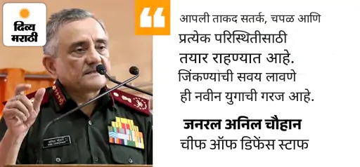 ची ऑफन्स डिफेन्स (CDS) जनरल अनिल चौहान यांनी सांगितले की, युद्ध लढाई वक्तृत्वाने नाही, तर स्पष्ट उद्दिष्ट आणि उद्देशपूर्ण क्रियाने फिरले.
